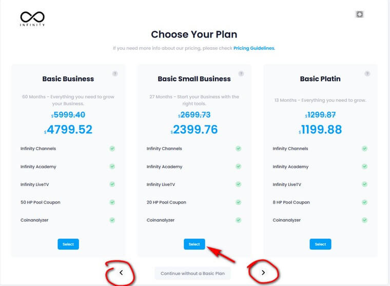 Wähle mit den Pfeilen am unteren Bildschirmrand Dein gewünschtes Paket aus und klicke auf "Select"